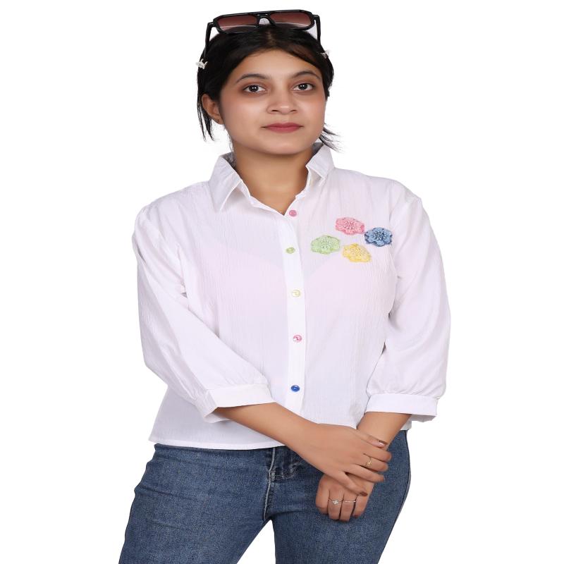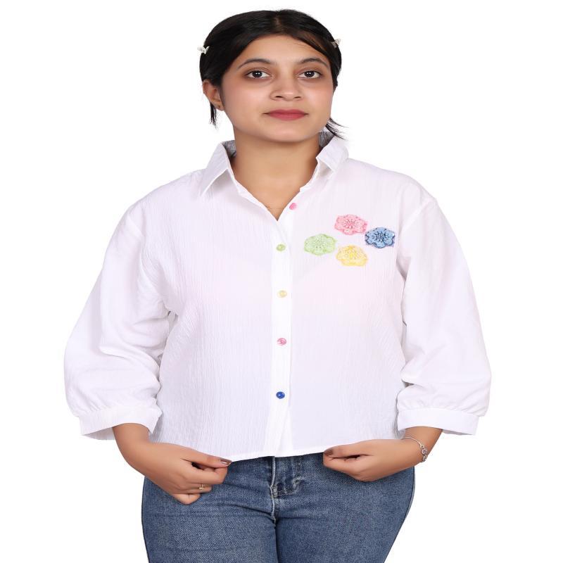 Designed to fit most body types comfortably, this free-size shirt provides a relaxed and flattering silhouette. Pair it with jeans, skirts, or trousers for a chic, polished look that suits any occasion.