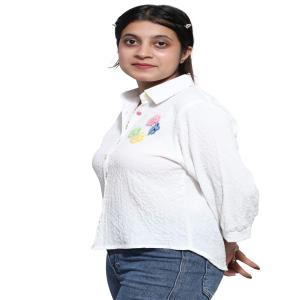 Add a touch of charm and elegance to your everyday wardrobe with this White Casual Shirt featuring a delicate Flower Design. Made from soft, breathable fabric, it ensures comfort throughout the day while keeping you stylish effortlessly. The subtle yet eye-catching flower embroidery on the shirt brings a refreshing, feminine touch, making it perfect for casual outings, meetups, or even semi-formal occasions.